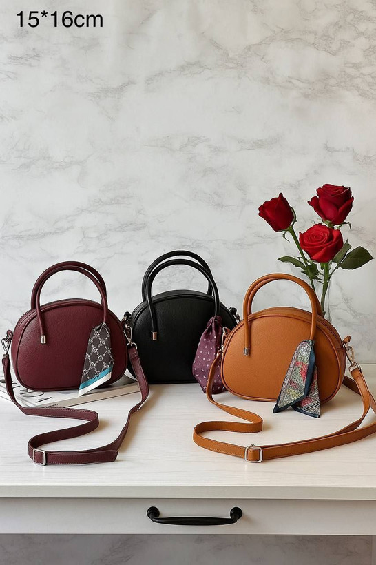 کیف مینی دسته کوتاه روسری دار دارای بند بلند چرم مصنوعی جادار