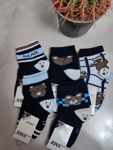 جوراب بچگانه طرح خرس گریزلی برند smr جنس نخ و پنبه سایز یک سال تا سه سال