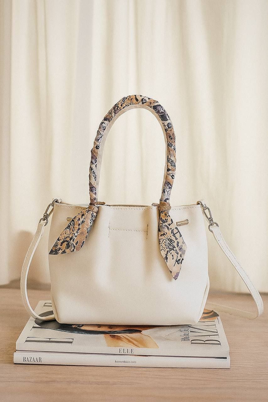 کیف مینی دسته کوتاه روسری دار دارای بند بلند چرم مصنوعی جادار