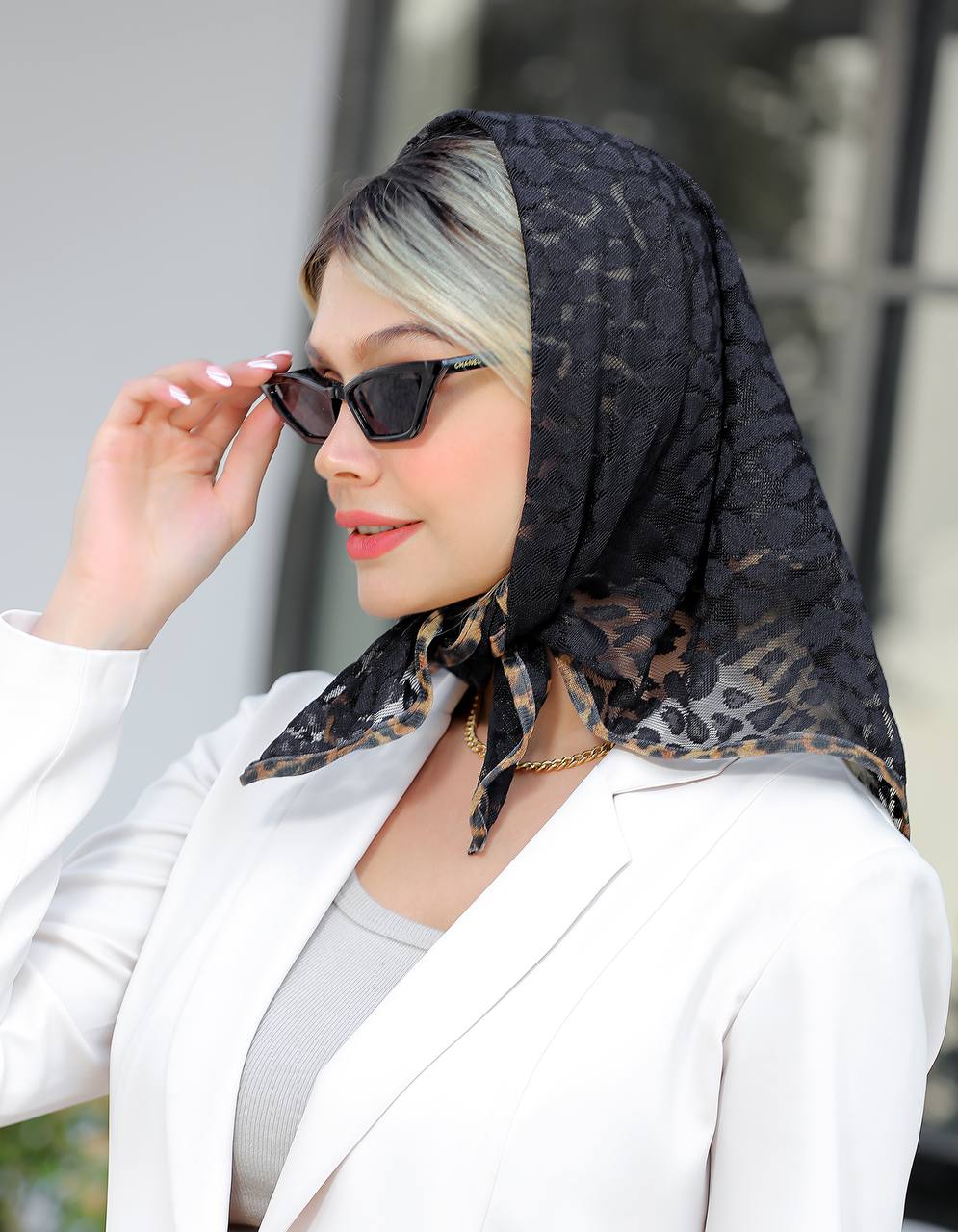 مینی اسکارف دانتل دور پلنگی کوتاه طرحدار فری سایز