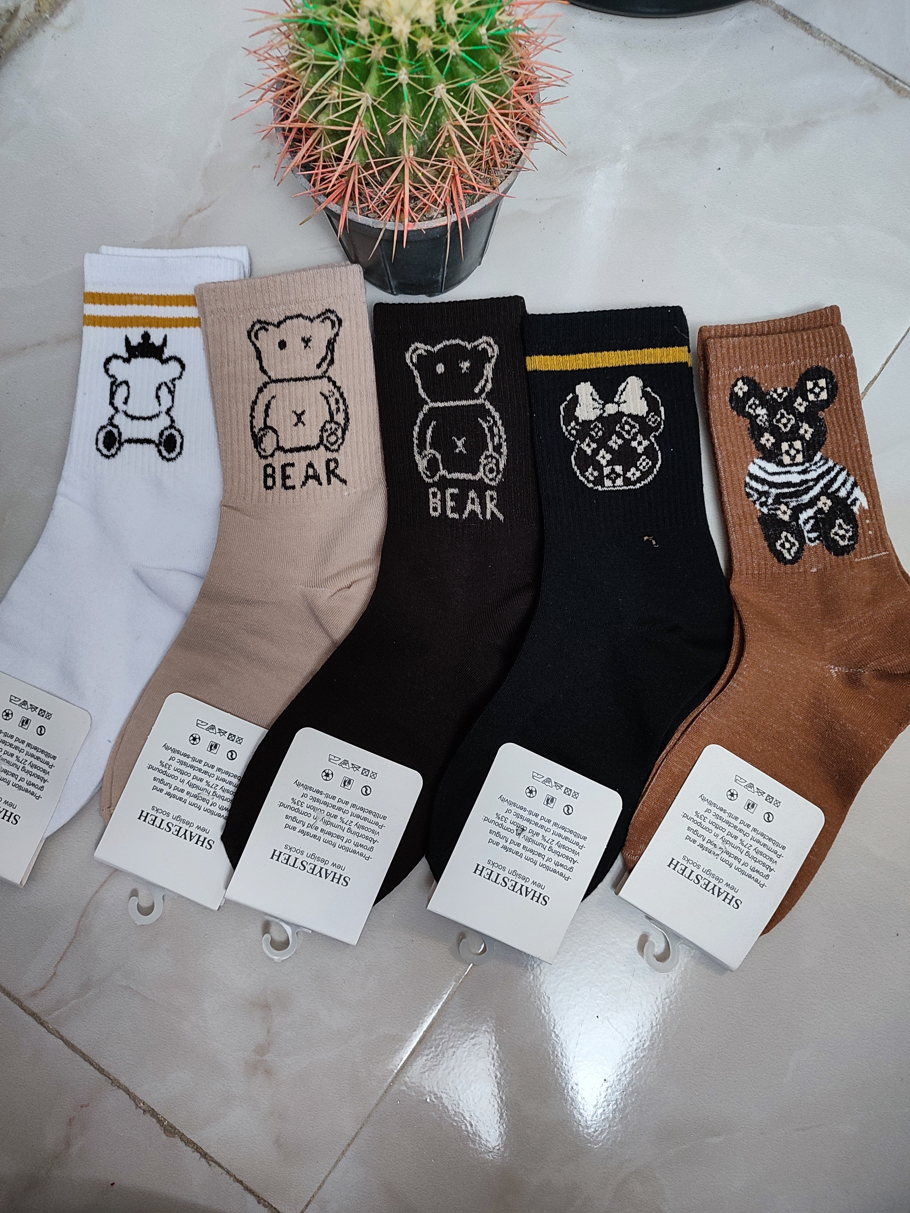 جوراب بچگانه طرح خرس گریزلی برند smr جنس نخ و پنبه سایز یک سال تا سه سال